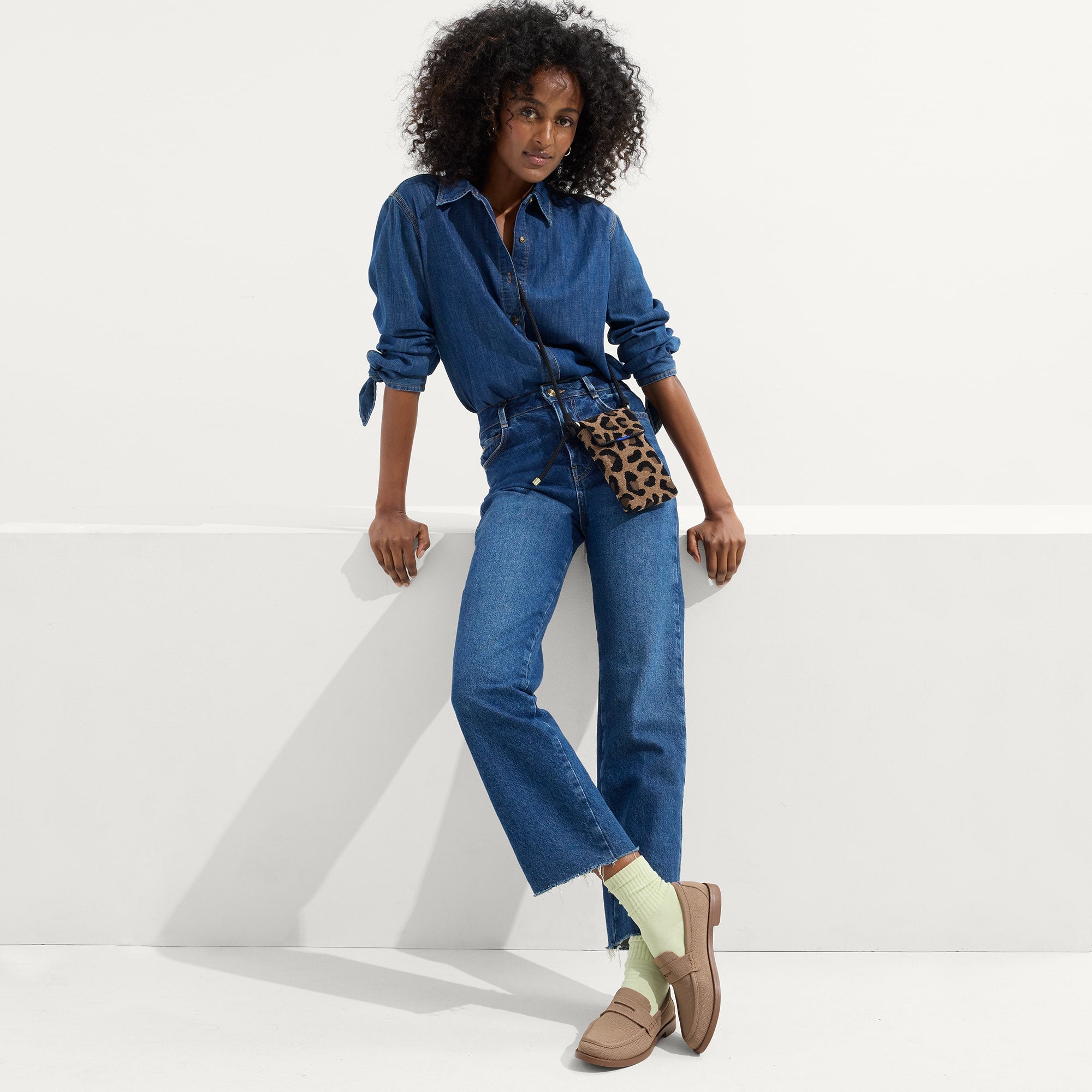 - Sleek. compact design in a black and brown leopard print.
