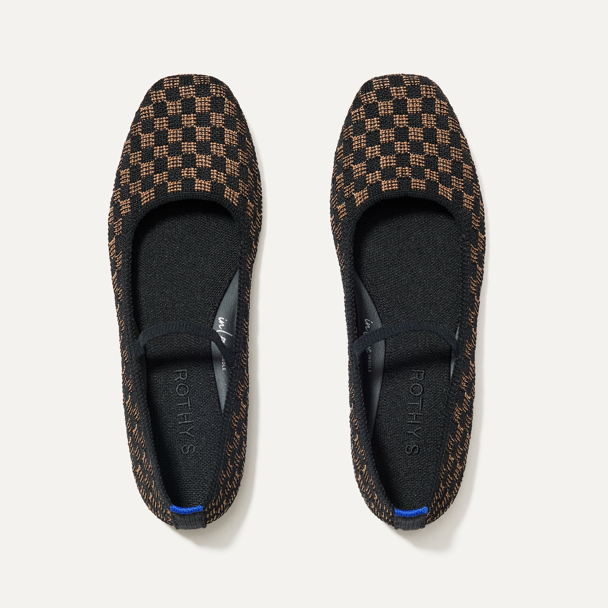 - Soft. flexible upper knit with a black and camel brown basketweave pattern.