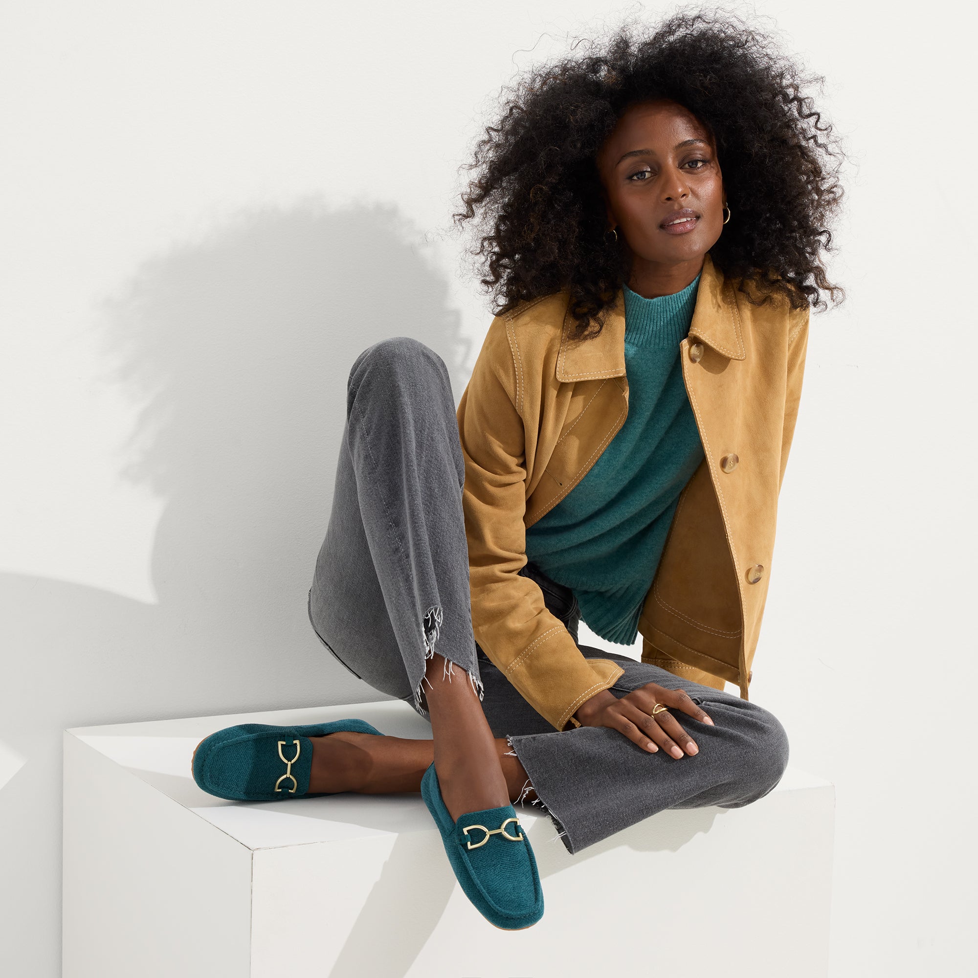 • Soft. flexible upper in jade green with a gold hardware signet bit on the vamp.